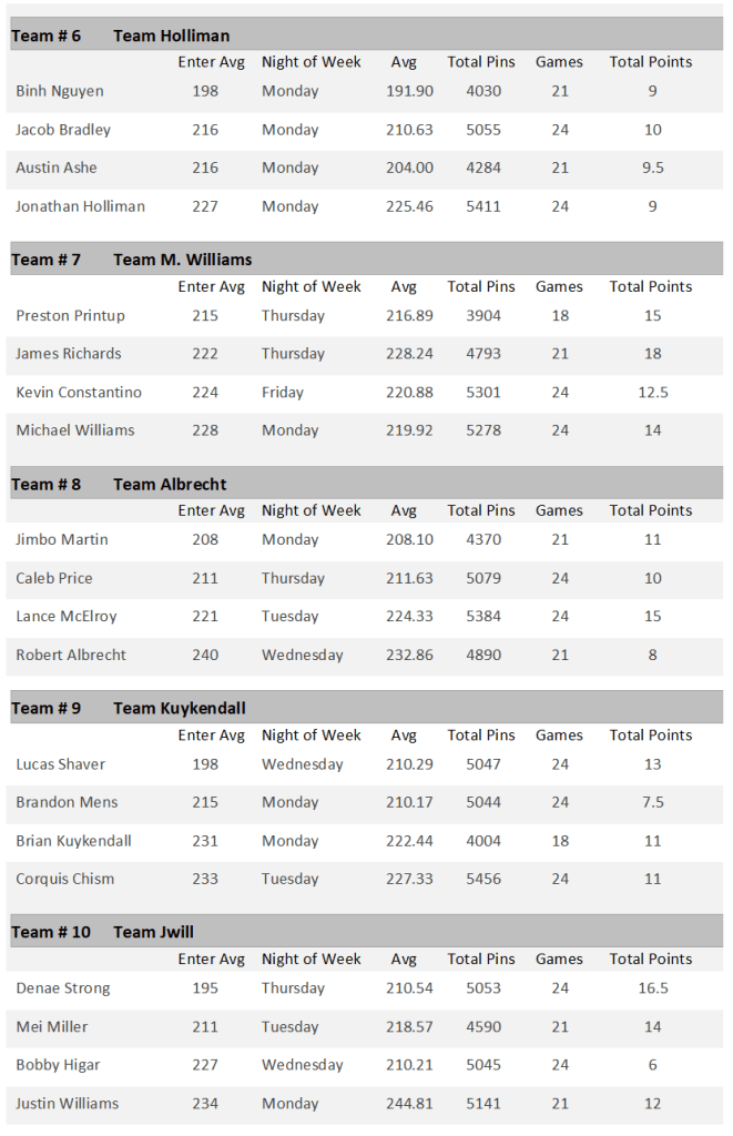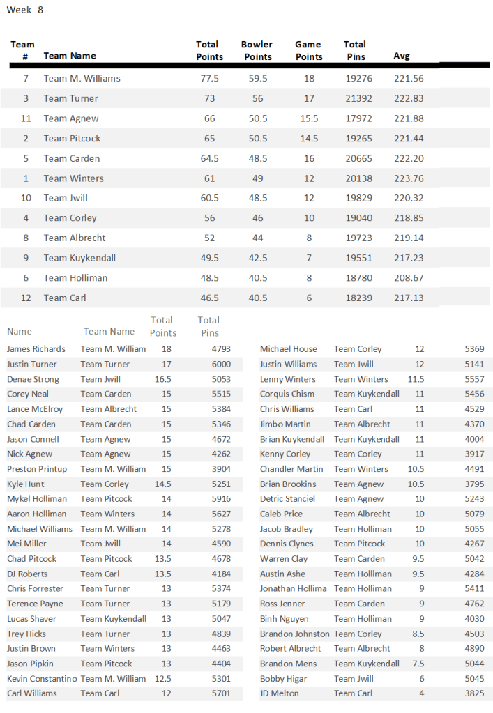 Standings Season 2