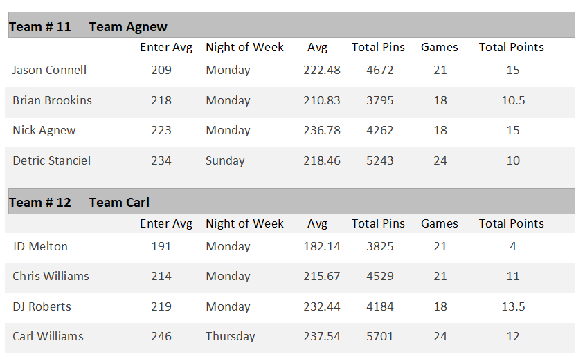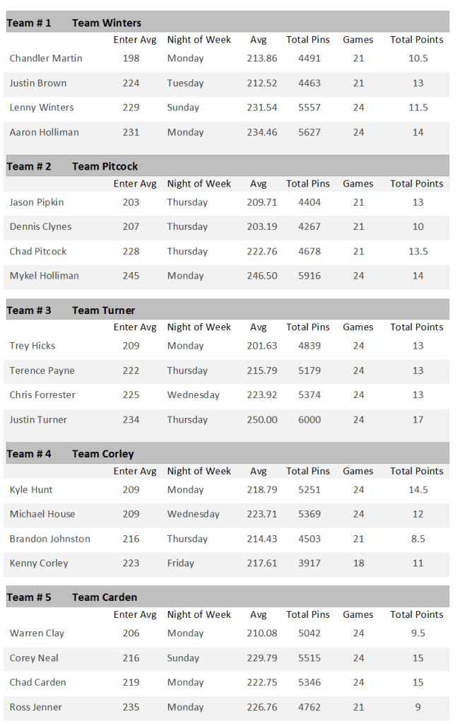 Season 1 Standings